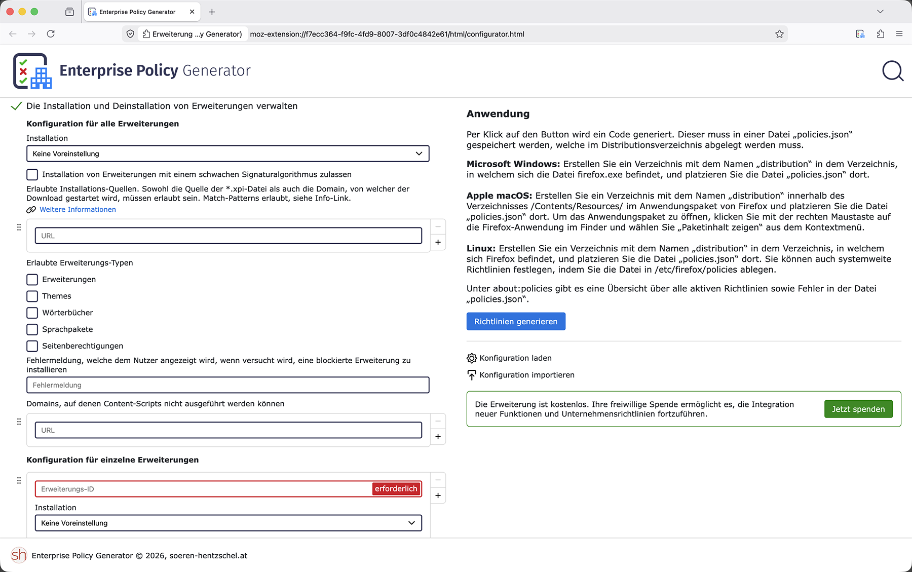 Wenn Sie begeistert von den angebotenen Erweiterungen sind, würde ich mich über eine kleine Spende freuen, die es mir ermöglicht, weitere Zeit in die Entwicklung kostenfreier Erweiterungen zu investieren.